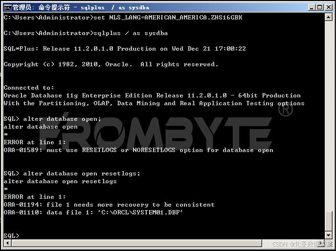 北亚企安数据恢复工程师进行各种尝试 ,查阅大量资料。最终确认这种数据库内部错误是无法通过命令修复的。