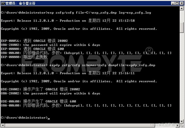 3、查询数据库报错,使用export和data pump工具时也报错。