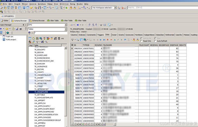 4、底层解析数据库文件,将ZXFG用户的数据导入到新的数据库中。
