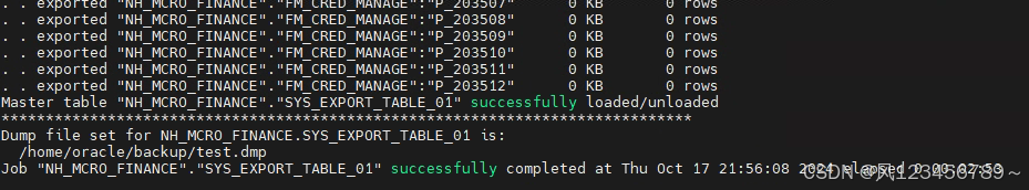 expdp nh_mcro_finance/finance_mcro_nh_fe01@192.168.3.15/orclpdb1 parfile=/home/oracle/backup/param/partest