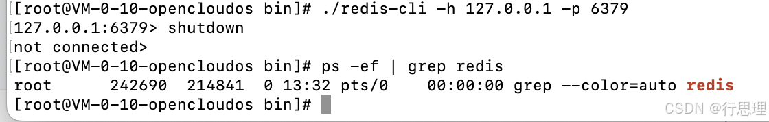 sudo kill -9 <PID> #命令格式 sudo kill -9 44379 #具体操作 #或者先运行 redis-cli 再执行 shutdown