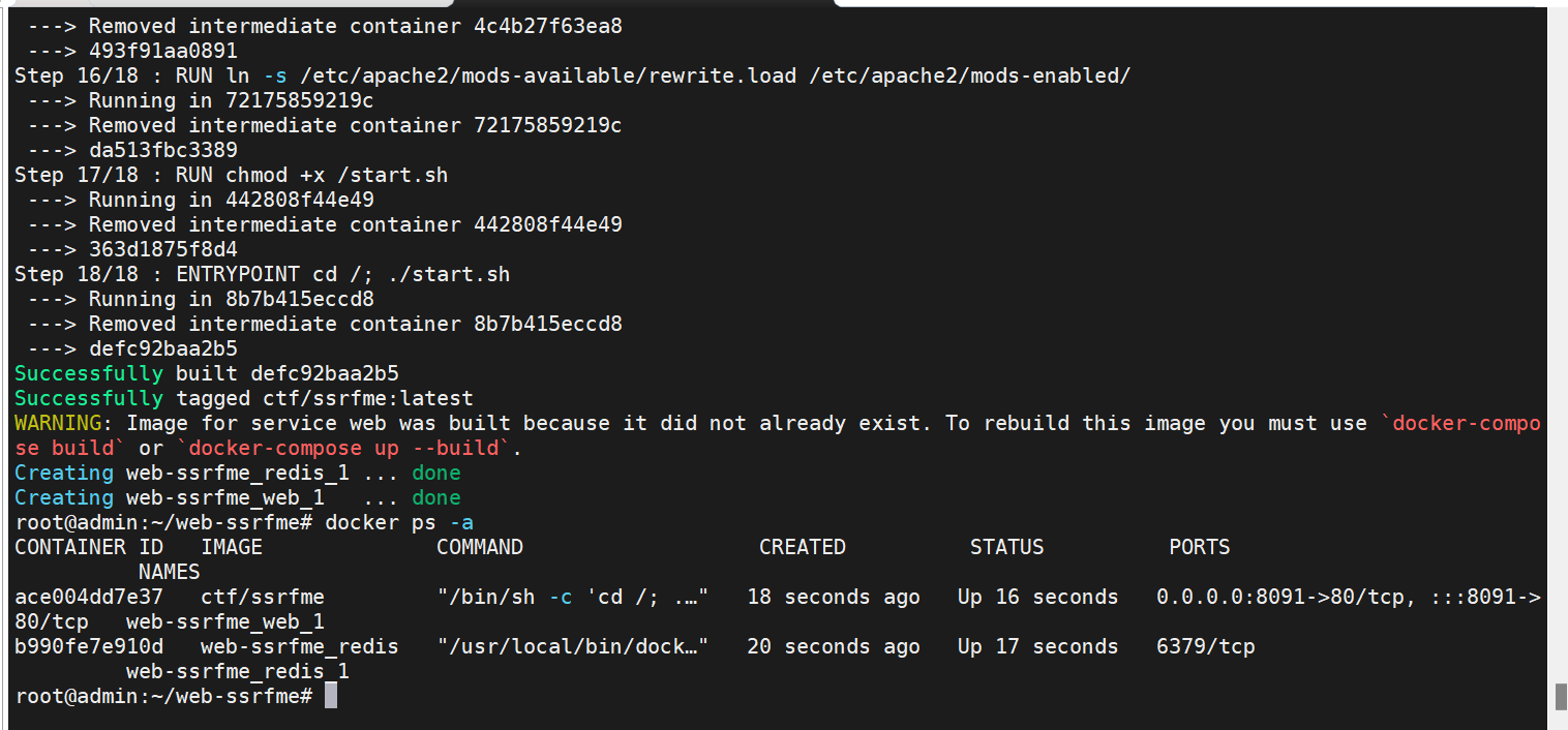 首先下载web-ssrfme.zip,然后放到虚拟机内,unzip解压,然后CD到含有docker-compose.yml文件夹目录下输入指令进行拖拽docker镜像