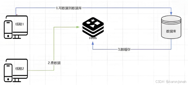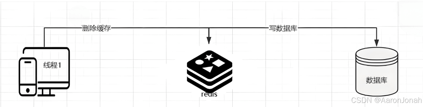 1. 线程1发起修改数据请求,先更新数据库。