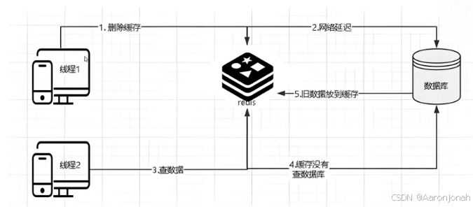 3. 线程1完成数据库更新后,删除缓存中的数据。