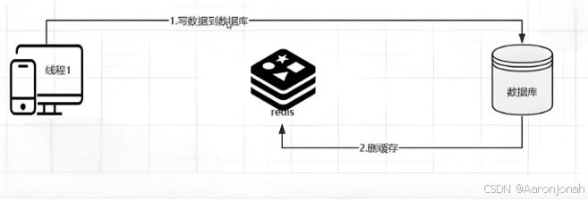 1. 线程1发起修改数据请求,会进行删除缓存操作。