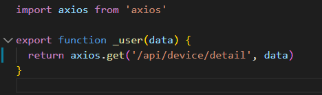 而后我们安装axios ,当然,其他的也行,在 src 目录项目建一个 api文件, 再在api文件里面建一个 user.js 写上下面这段代码
