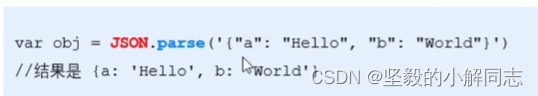 要实现从JSON字符串转换为js对象,使用JSON.parse()方法;