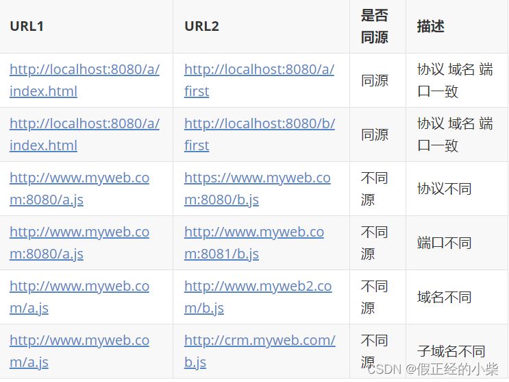 协议一致,域名一致,端口号一致,三要素都要一致,才是同源,其它一律都是不同源。