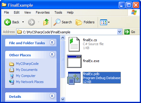 此时,您应当在应用程序目录中看到一个名为 finalEx.pdb 的新文件,如图 12 所示。