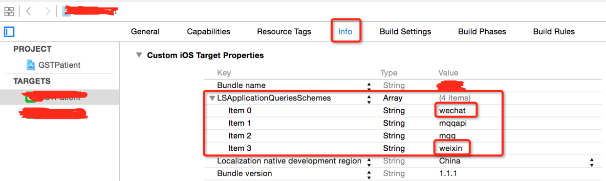 -canOpenURL: failed for URL: "weixin://app/wx9**********dfd30/" - error: "This app is not allowed to query for scheme weixin"