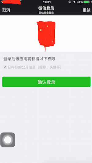 执行完上面那一步后,如果客户端安装了微信,那么就会向微信请求相应的授权,图如下:
