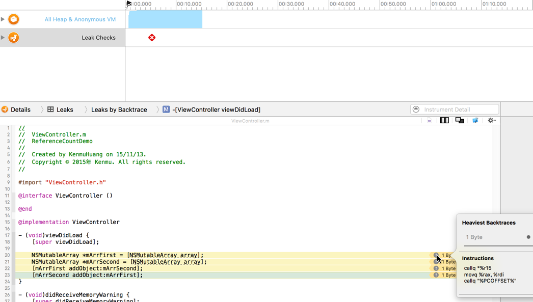 2.2 Xcode 中有什么工具可以检测循环引用吗?