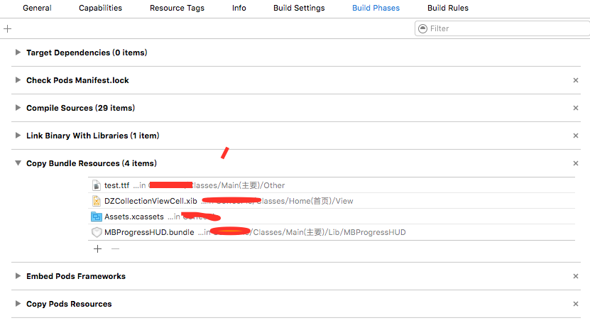 3.在target-->Build Phases-->Copy Bundle Resources中将info.plist中添加的字体添加上。 否则会出现找不到资源的情况