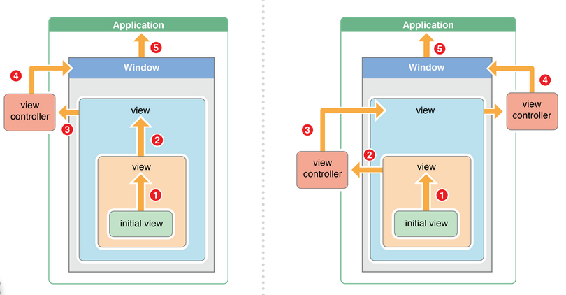 - 往上传递直到传递到视图控制器的根视图controllerView,如果根视图不响应,传递给视图控制器viewController