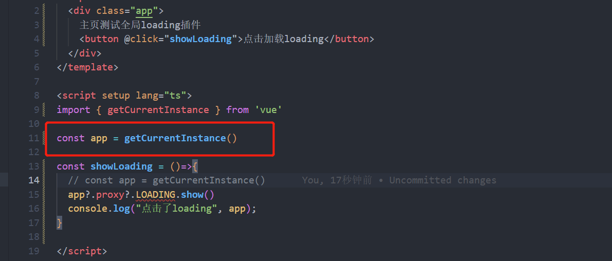 当我把getCurrentInstance写在外层setup里面之后就可以正常获取到了: