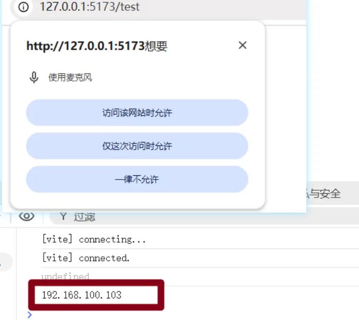 2、在使用该插件的时候,我的浏览器会弹出权限问题,只有在允许的情况下,才能获取IP地址。