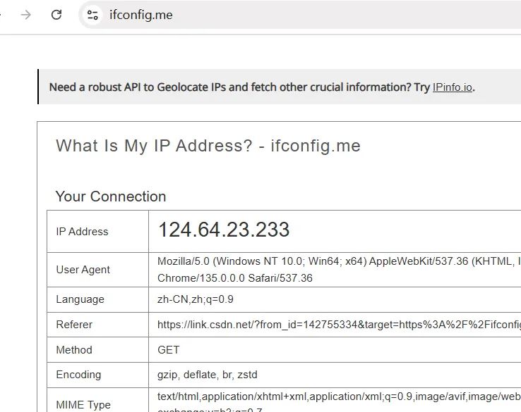 // 第三方服务返回IP地址"124.64.23.233"?