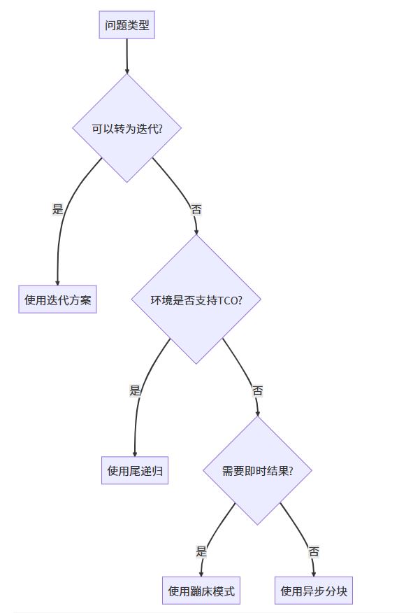 注意事项:即使在不支持 TCO 的环境中,尾递归写法仍能提高代码可读性,并可通过转换工具转义为安全代码