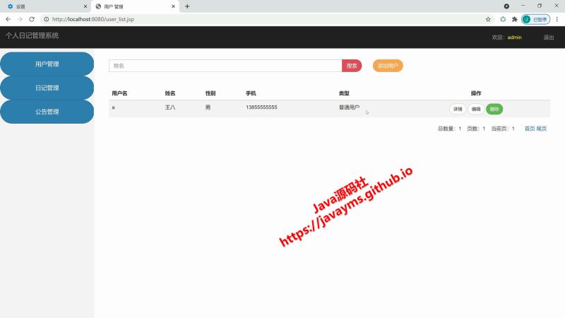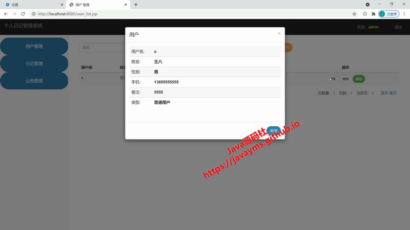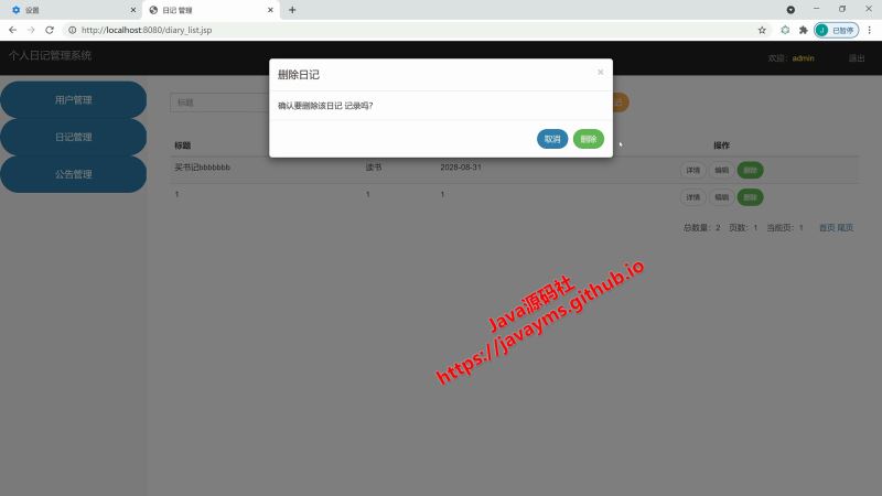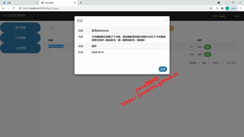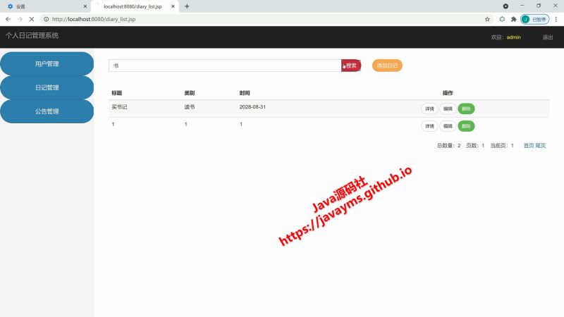 以上就是基于javaweb+jsp实现个人日记管理系统的详细内容,更多关于javaweb jsp个人日记管理系统的资料请关注站长网其它相关文章!