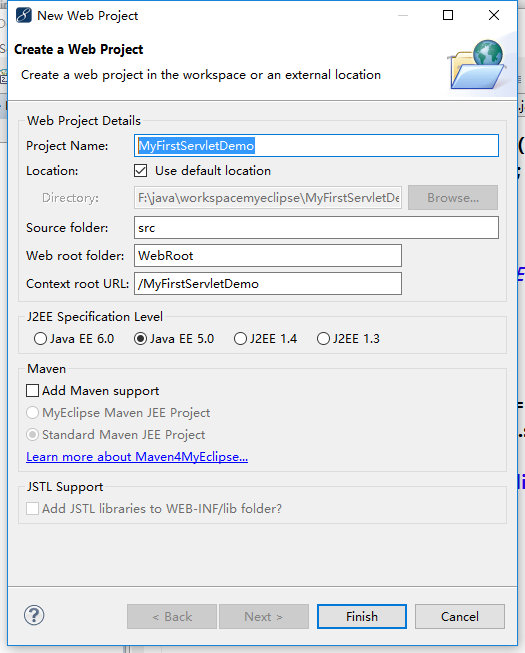 1、创建MyFirstServletDemo web project.