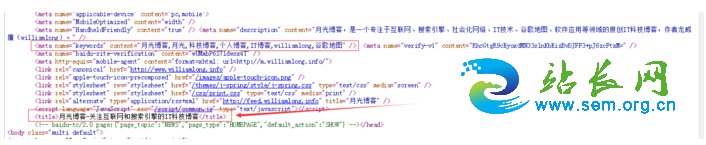 可能有人会疑惑,“互联网”是图中网站的目标关键词,但关键词标签里为什么没有这几个字?这是因为现在对于百度、谷歌等搜索引擎来说,关键词标签并不是很重要,其中是否有你要做的关键词,其作用不大。再者,由前面讲的分词效应可知,网站标题里包含的关键词非常多,没必要将这些关键词全部写入关键词标签里。否则,可能会让搜索引擎觉得你是在刻意优化排名,对你的网站反而不好。