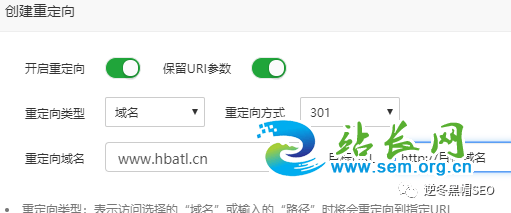 第四步:新增重定向,保留URL参数可设置关闭或打开( 301 需要保留),两者区别如下: