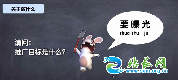 你去问一个做策划方案的人员,请问你这个方案的推广目标是什么?他回答你:要曝光,要越多越好的曝光。好的,曝光,可曝光是一个正确目标吗?当然不是!一个正确的目标要有一条明确的时间线和有一个可以计量的数据结果。如果你没有确定好一个目标,那你做的策划就相当于是一坨屎,你会为了你的曝光的目标去刷数据,可刷数据有用吗?这对公司的业务一点作用都不起。。