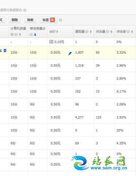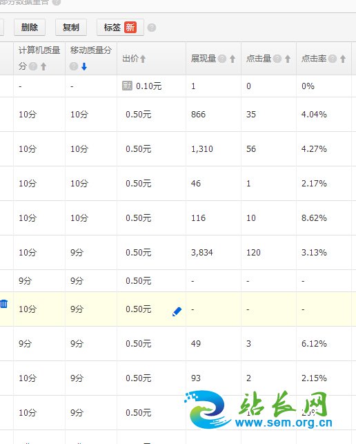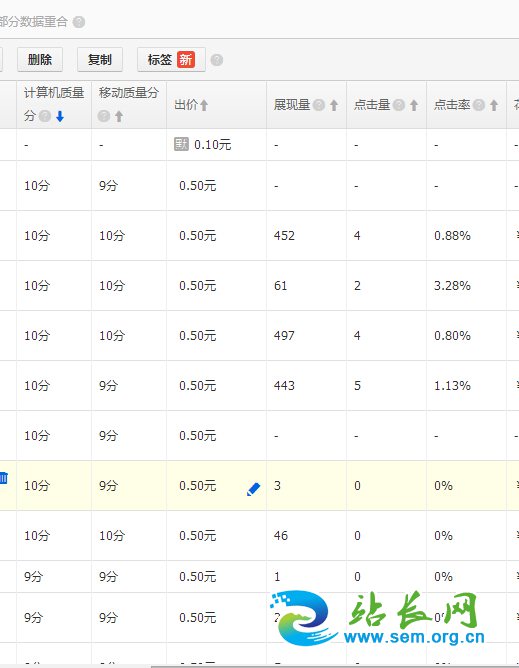 上面这个是PC端的推广效果,像这样的点击率PC端的质量得分能到十分吗?答案是不可能得。