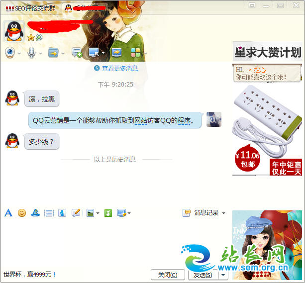 你的先天优势是什么?我的先天优势就是能够把访问我网站的用户QQ全部抓取到,当然,不是每一个我都会加QQ的,相信加了部分人的QQ,部分人已经察觉到了,这就是我们的先天优势,对于这一点我并不是用来推广,利用自己的先天优势抓住精准客户营销是非常重要的。当然,你的先天优势可以是QQ好友比较多,也可以是粉丝比较多,看起来不起眼的粉丝,合理的利用可能效果不一般。