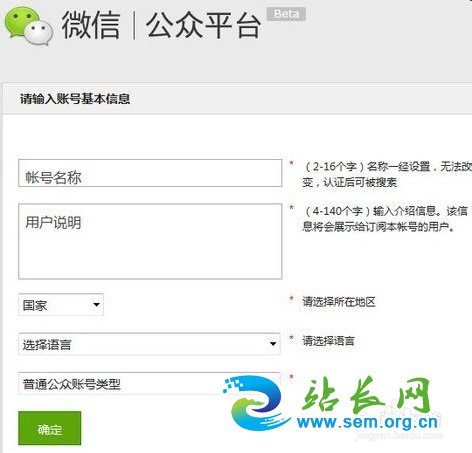 公众号信息中的账号名称设置了就不能更改的,想好了再输名称。其它的都根据个人的需求输入。最后【确定】