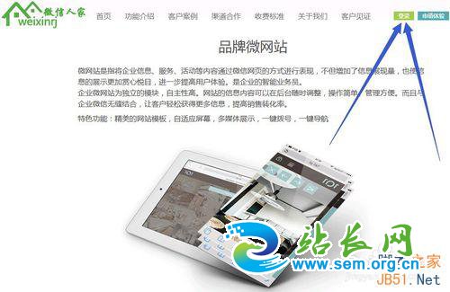 1、首先,打开网站点击上方的登录,进到网站后台,没有帐号的先注册【不同于公众号】。