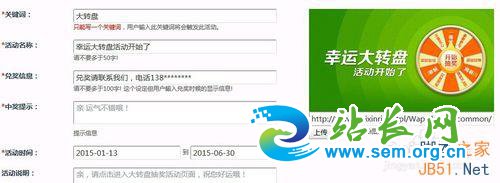 第四步,点击左侧--幸运大转盘,创建大转盘活动,完善里面具体内容后保存,在手机端预览。