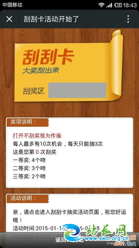第六步,点击--刮刮卡,和幸运大转盘一样,需要先填写好页面的内容,做好以后在手机上预览。