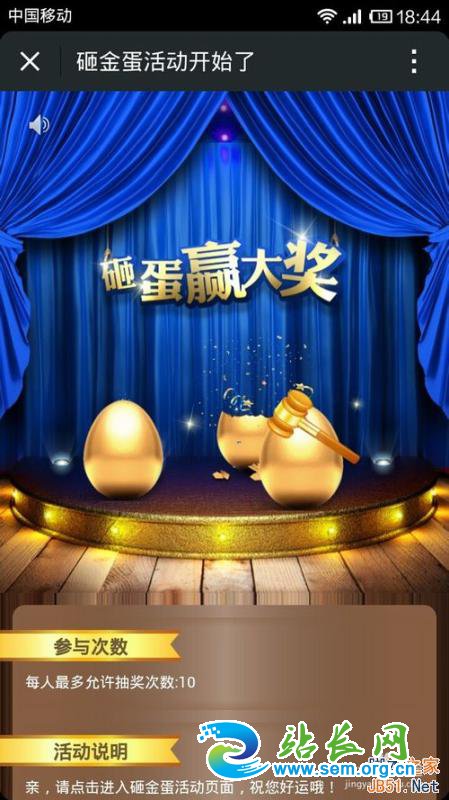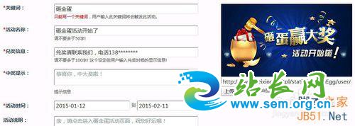 第八步,选择左侧位置的--砸金蛋,添加一个新的砸金蛋活动,填写好具体内容后保存,在手机端查看,可以和其他功能一样,放在微网站、自定义菜单、微商城里面。