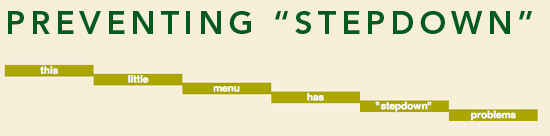 代码如下:ul#menu li {display: inline; /* Prevents "stepdown" *