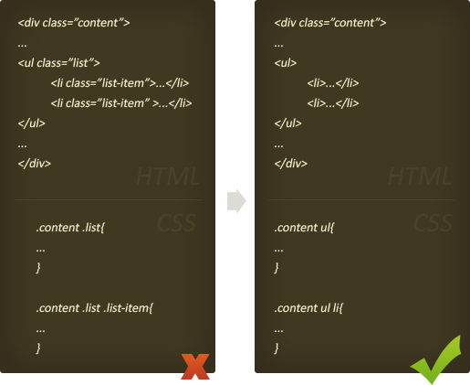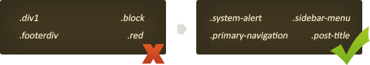 给你的元素声明一个恰当和简洁的名字是一个关键。这真的能够 避免混乱 并能让你更好更快的理解CSS。
