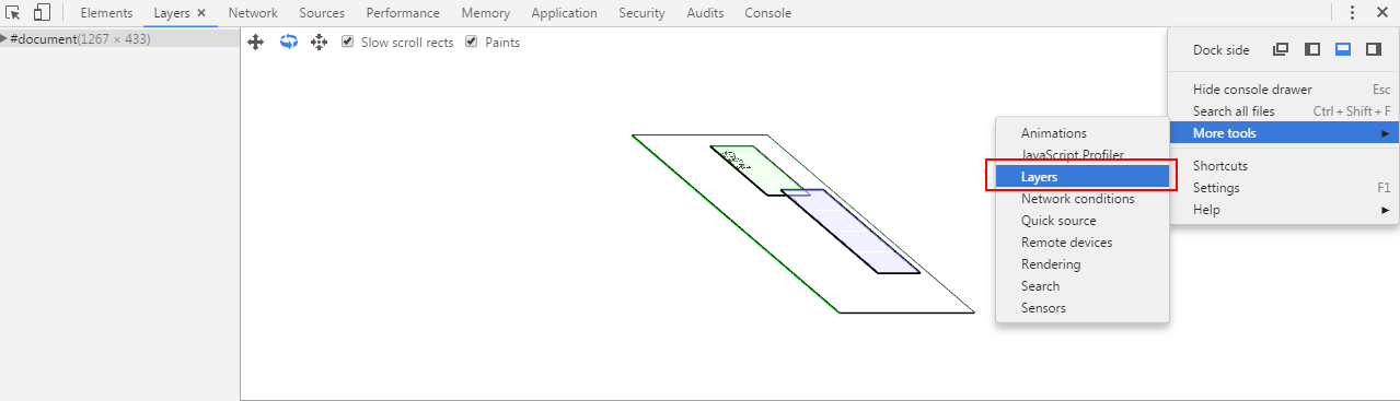 - 上面观察页面层级的 chrome 工具非常吃内存?好像还是一个处于实验室的功能,分析稍微大一点的页面容易直接卡死,所以要多学会使用第一种观察黄色边框的方式查看页面生成的 Graphics Layer 这种方式。