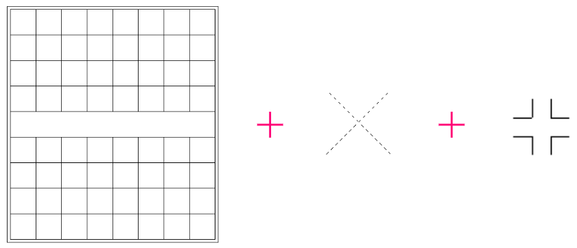 我们对整个布局进行一下拆分,大致可以分为三部分:网格 + 虚线交叉十字 + 特殊符号: