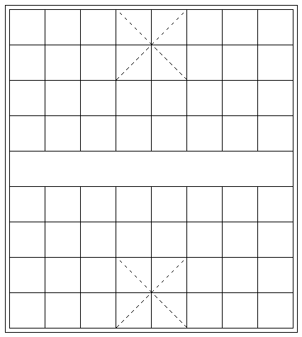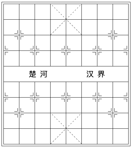 当然,还剩下楚河、汉界 4 个字,这个也简单直接加在 div 中即可,配合一些简单的 CSS 调整,整个效果就在一个标签内完成啦: