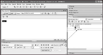第二步:在编辑区选中文字或者图片,直接拖拽属性面板中“Link”输入框旁边的圆形标靶图标,这时将出现一个箭头,当箭头指向网站管理器中的某一个文件时,文件周围会出现一个方框(如图1)。