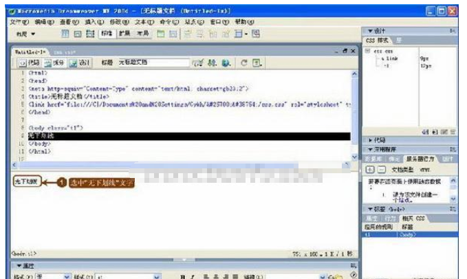 ( 4 )在文档窗口中输入“无下划线”字样。选中“无下划线”段落,然后打开属性设置界面,在样式列表中选择“ t1 ”,如图 22-6 所示。这样就将样式应用到所选网页元素上,读者可以保存网页文件后在浏览器中进行预览,这个时候会发现文字的大小为 12px ,而且超级链接的下划线也不见了。