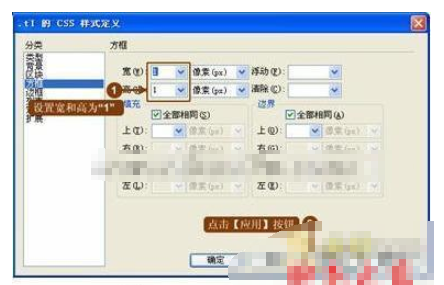 ( 2 )立体四边框文字链接。在分类栏中选择“边框”,然后设置宽和高的值为 1px ,这样可以使链接文字与按钮四周有 1px 的间距,从而使四边框看起来有立体感,具体设置如图 22-9 所示。