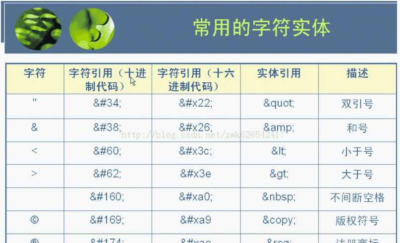 特殊字符包括字符引用和实体引用,下面我们将常用的进行总结
