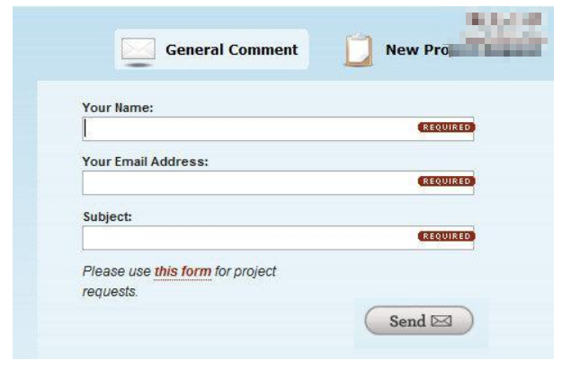 Flingmedia用了一个变化的联系表单,依赖于访问者的意图(一般评论,新项目的请求),用户可以选择他/她感兴趣的网页表单。