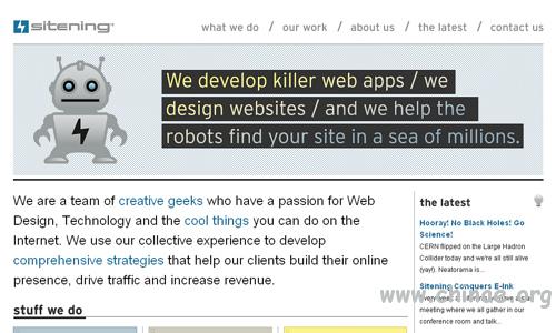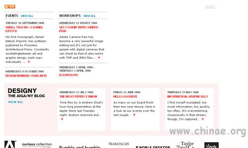 个人不太喜欢文字罗列的网站,但这个网站没给我太大的压力,究其根源应该是设计布局比较流畅,字体运用合理的缘故。网站使用大号字体和JavaScript来突出显示某些重要信息给用户,用较小的字体来进行补充注释。CSS样式布局将页面区块划分的非常清楚,一目了然。大胆的边框应用引导用户浏览操作,达到了流畅紧凑的效果。