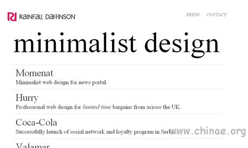这个网站真的是简洁的不能再简洁了,首页没有一幅图片,没有突兀的色彩点缀,仅仅是文字和文字间流畅的罗列,可见也是网站设计者一个勇敢的尝试了。